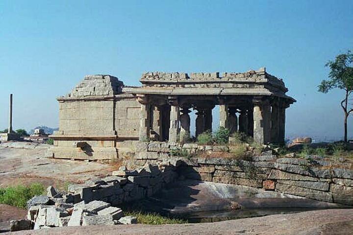 Small temple near an interesting wall.